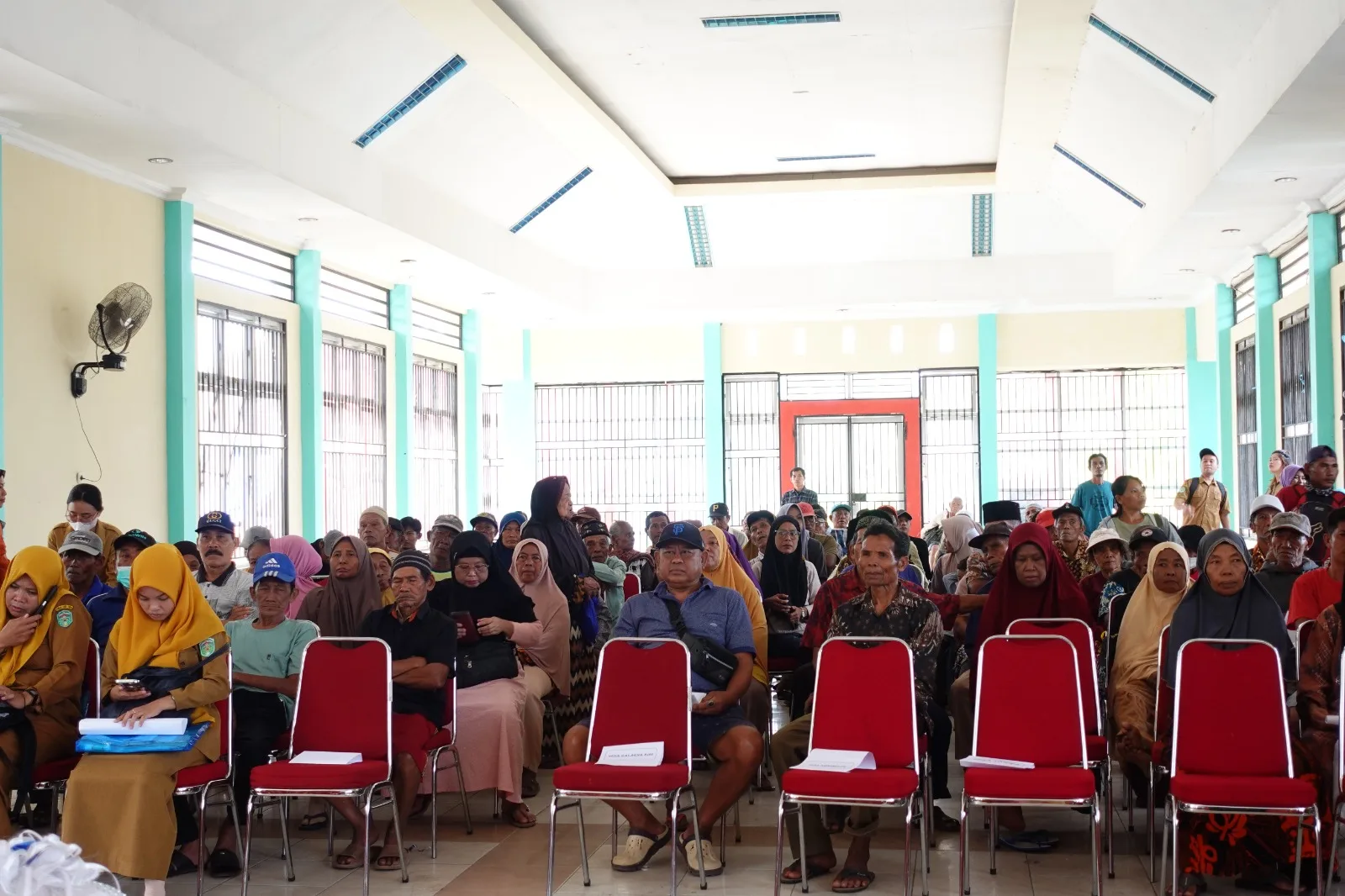 Meski tak lagi mampu berjalan, semangatnya untuk hadir menerima bantuan tetap kuat.