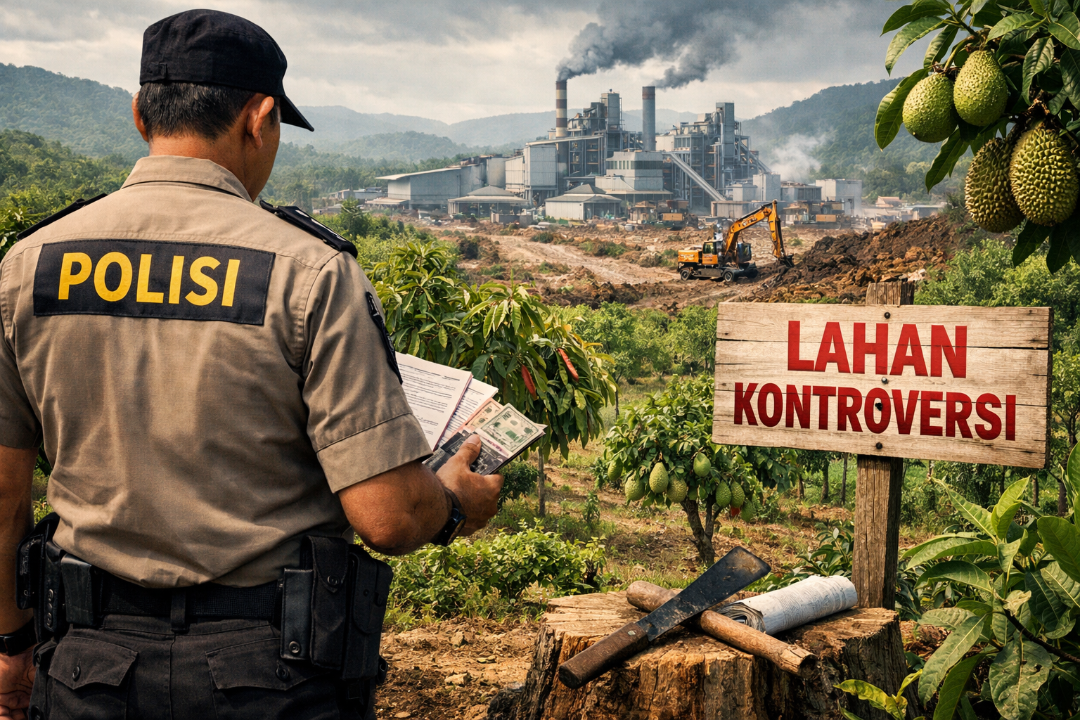 Informasi yang dihimpun redaksi menyebut, lahan tersebut berada di blok dua kawasan Lampia wilayah yang masuk dalam rencana pengembangan industri skala besar. Di atas lahan itu, berdiri tanaman jengkol, kakao, durian, hingga alpukat. Y mengaku lahan tersebut bukan atas namanya langsung, melainkan menggunakan nama keluarganya.