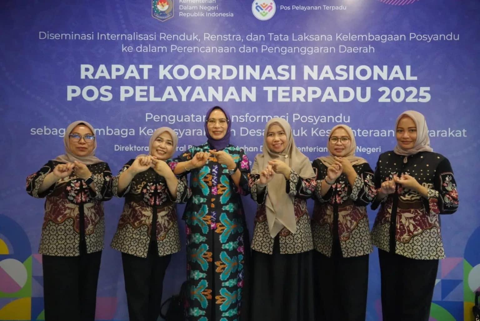 “Adapun tujuan rakornas tahun 2025 ialah untuk memantapkan implementasi dan menguatkan kelembagaan posyandu, meningkatkan pemahaman arti penting tata cara pemberian nomor registrasi diposyandu, desiminasi rencana strategis renstra posyandu yang diinternalisasi kedalam dokumen perencanaan dan anggaran daerah, dan memberikan penghargaan hasil lomba pembina posyandu provinsi serta pengenalan seragam posyandu,” tuturnya.