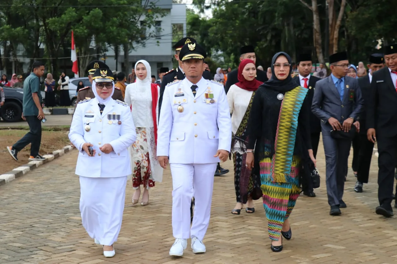 ‎Suasana hening dan penuh hormat menyelimuti seluruh peserta upacara dan tamu undangan saat menyaksikan bendera merah putih tampak digerek secara perlahan dengan iringan lagu Indonesia Raya secara langsung di lapangan maupun melalui media daring (live streaming YouTube).