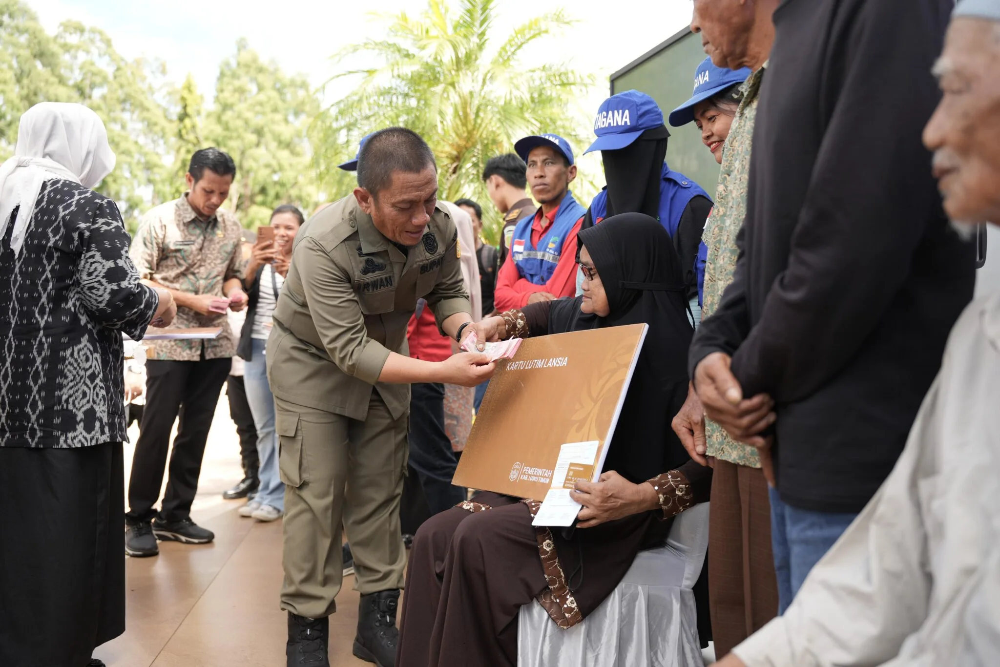 Penyerahan bantuan dilakukan secara simbolis oleh Bupati Luwu Timur, Irwan Bachri Syam, di halaman Kantor Bupati Luwu Timur, Malili. Sejumlah lansia penerima manfaat hadir langsung dalam acara tersebut, sementara penyaluran selanjutnya akan dilakukan di masing-masing kecamatan.